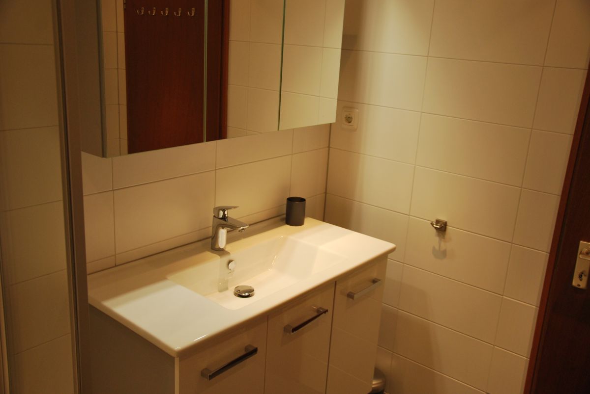 Das Badezimmer hat eine Dusche, Waschbecken mit Schränken mit viel Stauraum und ein wandhängendes WC. In der Wohnung ist ein Alkoven mit Doppelbett und Fernseher. Die voll ausgestattete Küche verfügt über eine Mikrowelle, Geschirrspüler, Kühlschrank mit Gefrierfach und ein Glaskeramik-Kochfeld mit 4 Platten. Es gibt auch einen Wasserkocher, eine Kaffeemaschine und eine Senseo Maschine. Das geräumige Wohnzimmer hat eine Sitzecke mit Fernsehen, ein Sofa und einen gemütlichen Essbereich. Das Sofa wird einfach in ein gutes Doppelbett (170x200) umgewandelt. Wir haben, wenn nötig, ein zusätzliches Klappbett für ein Kind. Und kostenfreien Wifi-Internetzugang fehlt natürlich auch nicht in unserer Wohnung.